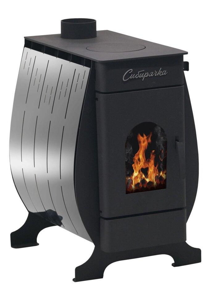 Воздухогрейная печь «Сибирячка» представляет собой отопительный прибор, предназначенный для обогрева помещений различного назначения объемом от 100 м3 до 200 м3. Отличительной особенностью данной печи является наличие в ее конструкции варочной плиты, предназначенной для приготовления пищи и нагрева воды. Стенки печи изготовлены из стали марки Ст.3 СП 5 толщиной 3 мм, а варочная плита – 6 мм, которая с обратной стороны имеет кольцо, необходимое для удержания металлического кружка. Неповторимая эстетика печи «Сибирячка» достигается за счет создания стильного дизайна, позволяющего дополнить любой загородный интерьер качественным отопительным прибором по более чем доступной цене. Основным источником топлива в данной печи являются дрова и прессованные древесные брикеты, позволяющие получать максимальное тепло при использовании данной печи для отопления, а высокоточный лазерный раскрой металла в совокупности с робототизированной сваркой ключевых узлов печи делает эту печь еще надежней и долговечней. Данная модификация оснащена кожухом из нержавеющей стали марки AISI 430, толщина которого составляет 0,8 мм.